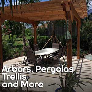 We specialize in unique custom landscape design in Central Florida that includes fireplaces, fire pits, custom barbecues, spectacular waterfalls and water features, fountains, ambient and walkway lighting, specialty rocks and boulders, decorative retaining walls and fences, natural flagstone, no-maintenance irrigation and of course pergolas and arbors.